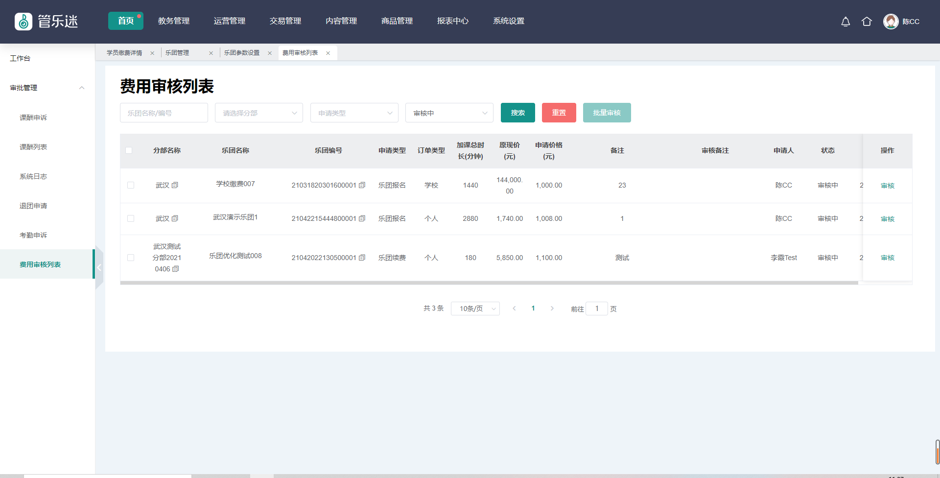 乐团费用审核