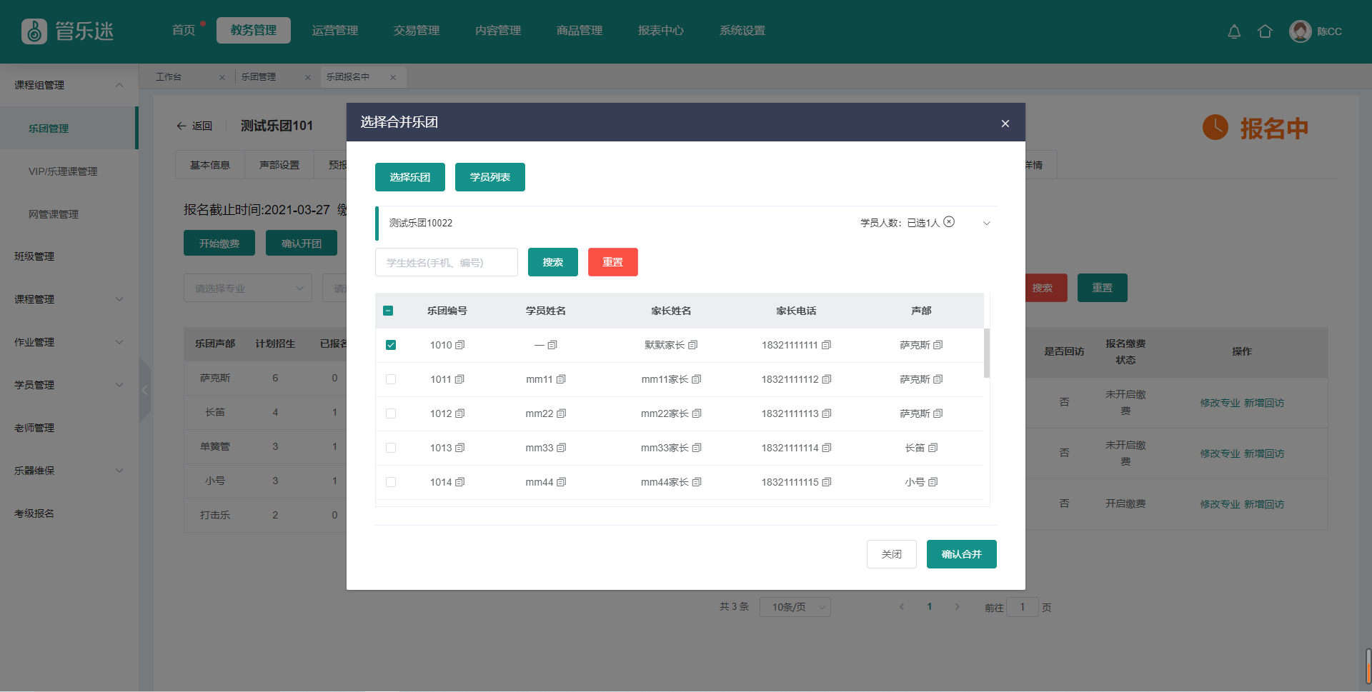 合并学员