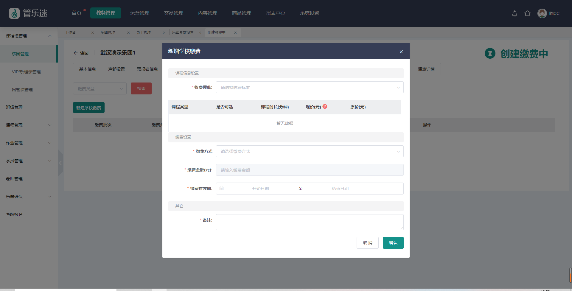 乐团创建缴费